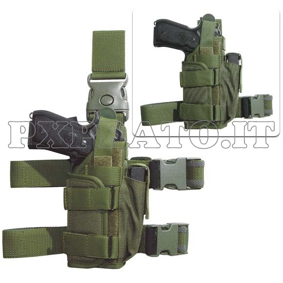 Fondina Cosciale Militare VEGA HOLSTER PA280 Tactical Sgancio Rapido con Sicura e Porta Caricatore per Armi con Torcia Tattica e/o Laser in Cordura Verde
