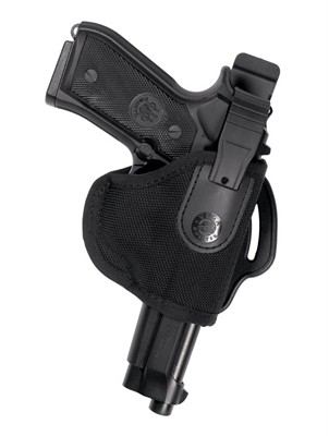 Dotata di sgancio rapido regolabile con sicura, canna scoperta. Supporto passante con TECHNO ASOLE. Posizione: inclinata fianco destro o cross draw.
