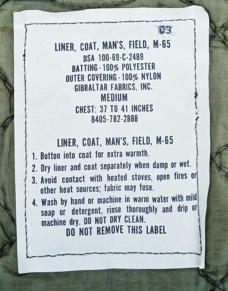 Imbottitura Trapunta Militare per Field Jacket M65 US ARMY